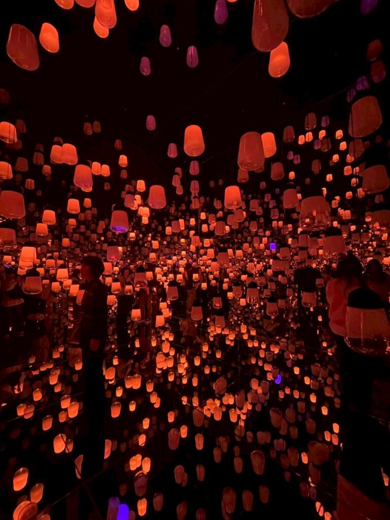 無数のランプでつくられたランプの森や前面鏡張りの部屋など方向感覚を失うような空間づくりには圧巻でした。