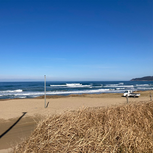 - 海の前に家